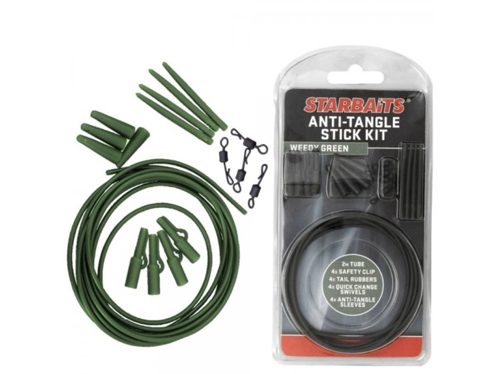 Anti Tangle Stick Kit – Praktický set na vytvoření pevné montáže pro nahazování. Skládá se ze závěsu na olovo Safety Lead Clip, návleku na závěs, hadičky proti zamotání, rychloobratlíku Quick Change Swivel vel. 8 a dlouhé gumičky pro ochranu návazce před zamotáním Anti Tangle Sleeve Long. Set je obsahuje pouze prvotřídní komponenty Starbaits bižuterie. Tento set je neodmyslitelnou součástí výbavy kapraře při vázání moderních a účinných kaprových montáží.