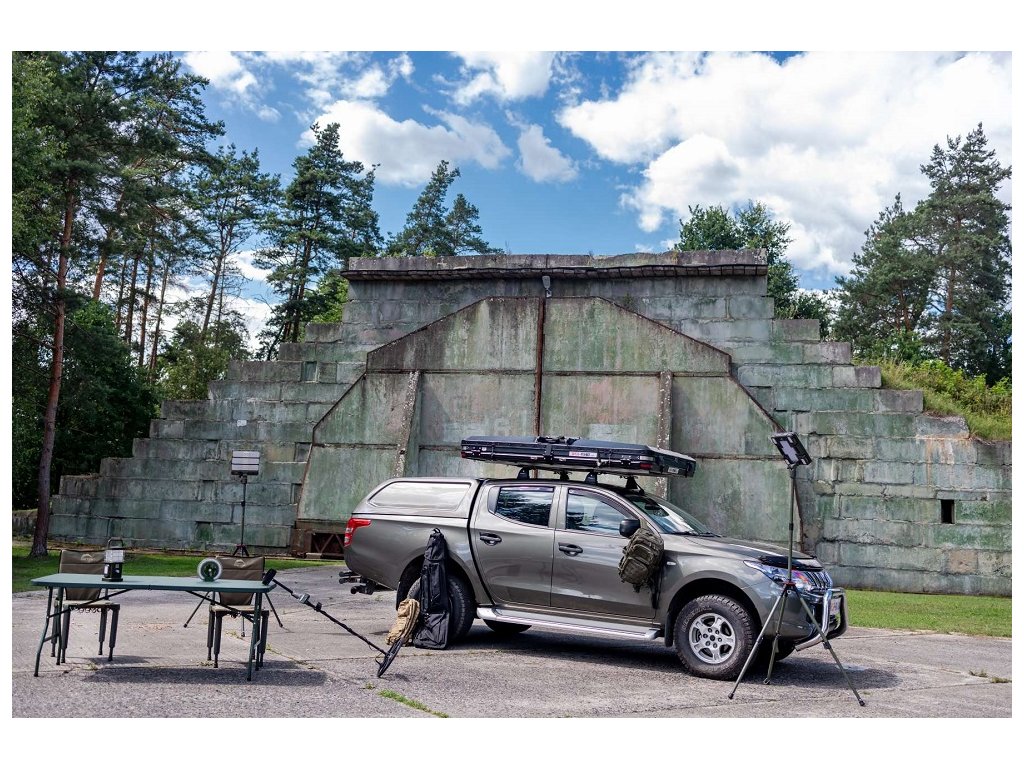 -hydraulický plynový systém. Pouzdro celého stanu při přepravě neprodyšně uzavřeno.