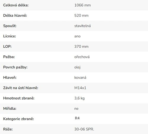 - schránkové provedení ráže 308 Winchester nebo 30-06 Springfield;