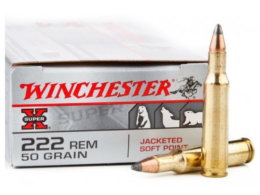 Lovecký kulový náboj Winchester ráže .222 Rem. se střelou JSP o hmotnosti 3,24 g (50 gr), balení 20 ks.