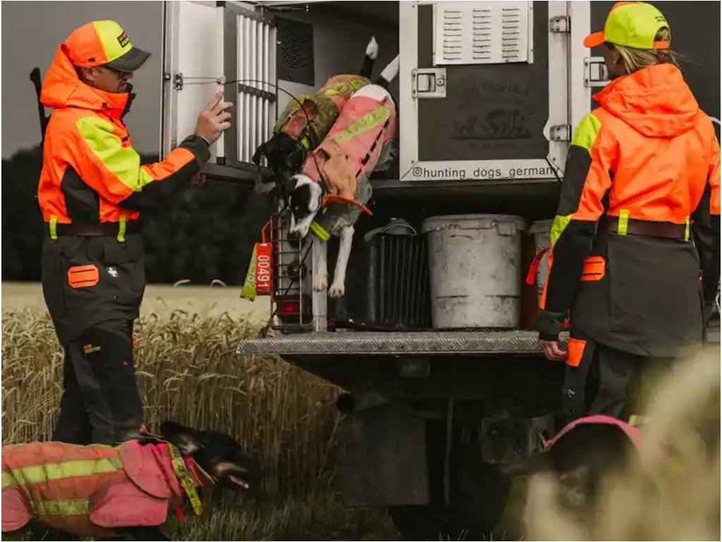 Zvýšený ledvinový pás se síťovanou vložkou v bederní oblasti zajišťuje pohodlné odvětrávání. Skryté háčky na tkaničky zajišťují bezpečné uchycení a zabraňují sklouzávání kalhot. Jasně oranžové detaily zvyšují viditelnost a podporují bezpečnost při lovu. S nepromokavými ochrannými kalhotami proti divočákům Hatz-Watz jsou lovci dokonale vybaveni pro bezpečnou a pohodlnou práci v jakékoli situaci, ať už při stopování nebo jako psovodi.