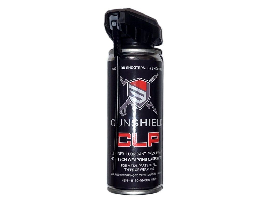 Profesionální prostředek pro údržbu zbraní, který poskytne Vaší milé nejvyšší možnou ochranu proti nečistotám, opotřebení a vlhkosti (včetně slané vody). CLP 3 v 1 - disperguje zbytky kovů z projektilů ulpěné na stěnách hlavní, odstraňuje usazeniny a zbytky střelného prachu, rozpouští předchozí konzervační prostředky a použitá maziva. Gunshield nanáší na povrch mikro vrstvu obsahující unikátní směs mazacích složek, inhibitorů koroze a proti adhezních prostředků. Speciální technologie prostředku CLP® Gunshield zajišťuje maximální snížení tření mezi pohyblivými částmi. Prostředek zasychá, ošetřený povrch nezůstává mastný.
