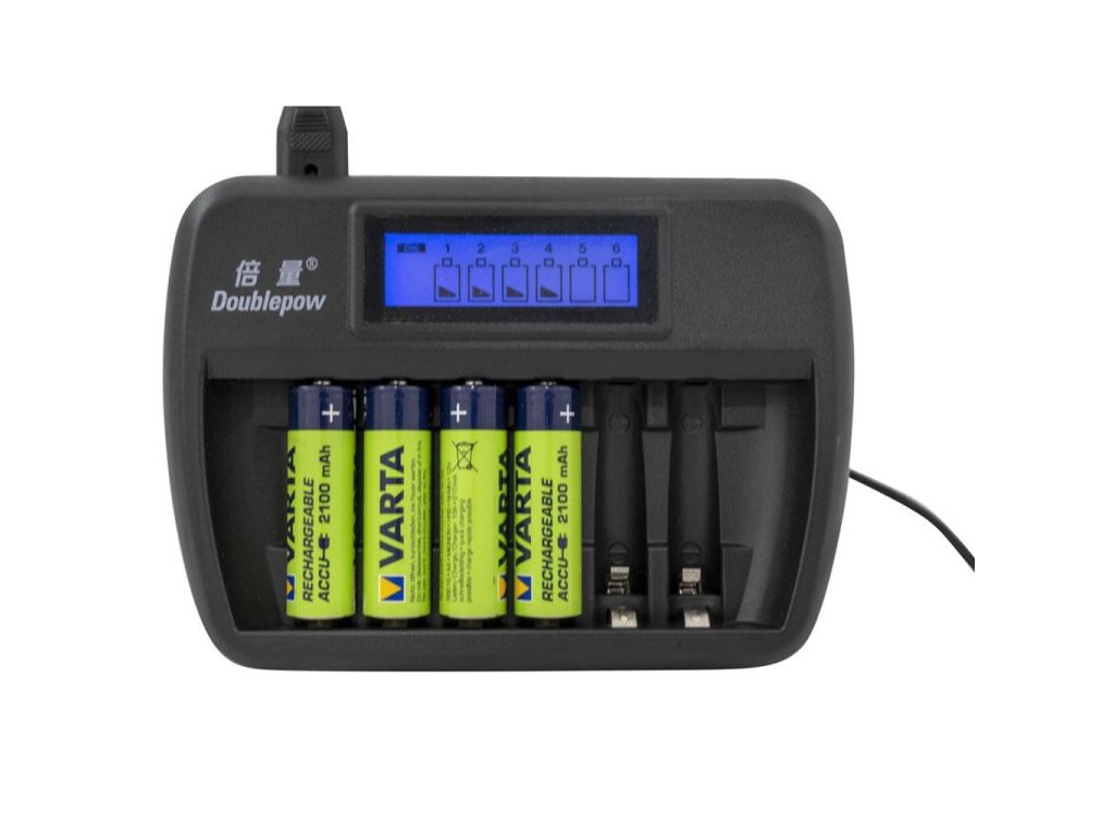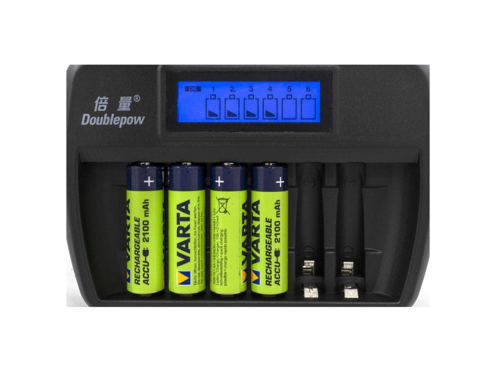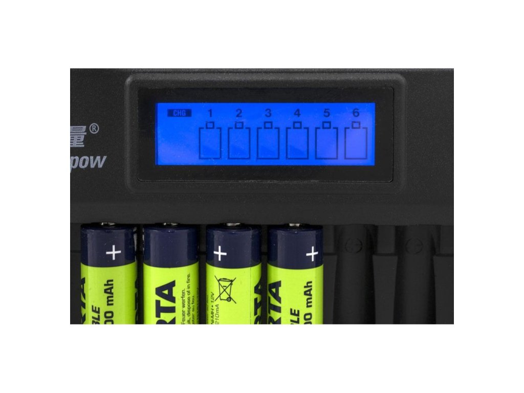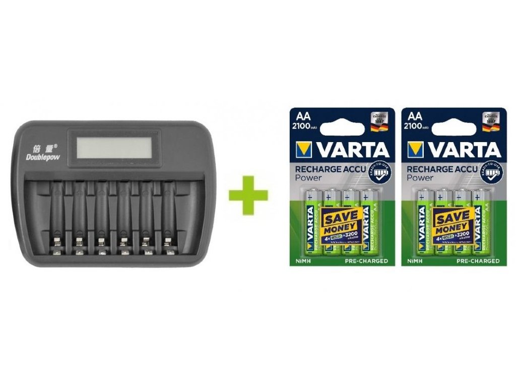 OXE Nabíječka baterií AA / AAA na 6 ks, s displejem a 8 ks nabíjecích baterií Varta 56706 R6 2100mAh NIMH basic