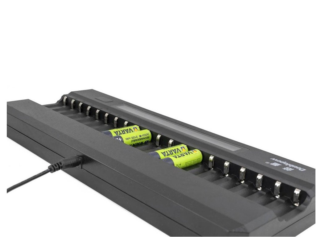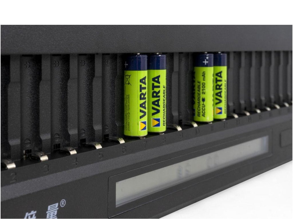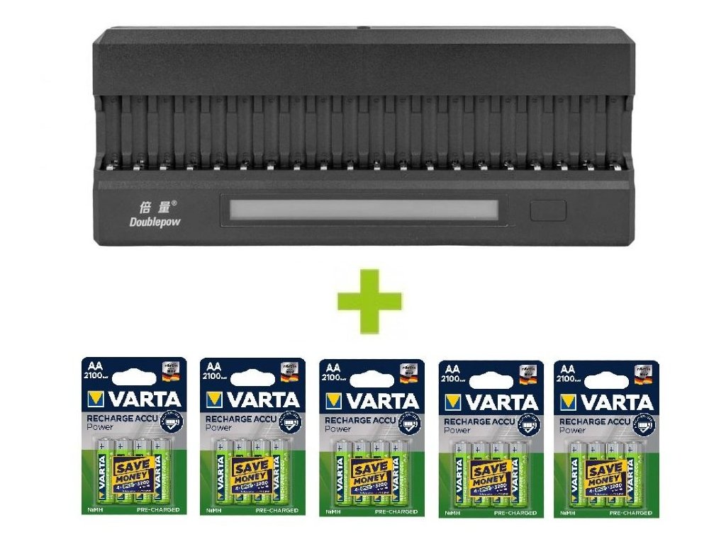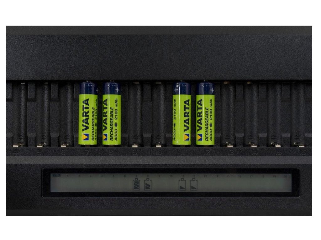 OXE Nabíječka baterií AA na 20 ks, s displejem a 20 ks nabíjecích baterií Varta 56706 R6 2100mAh NIMH basic