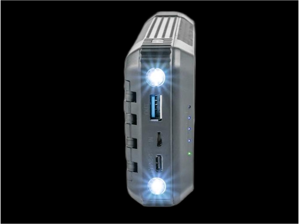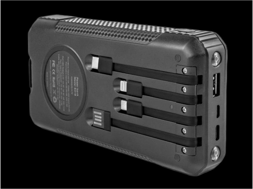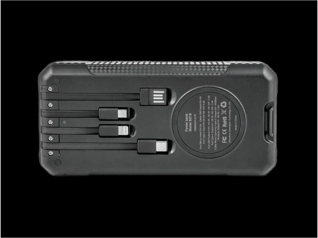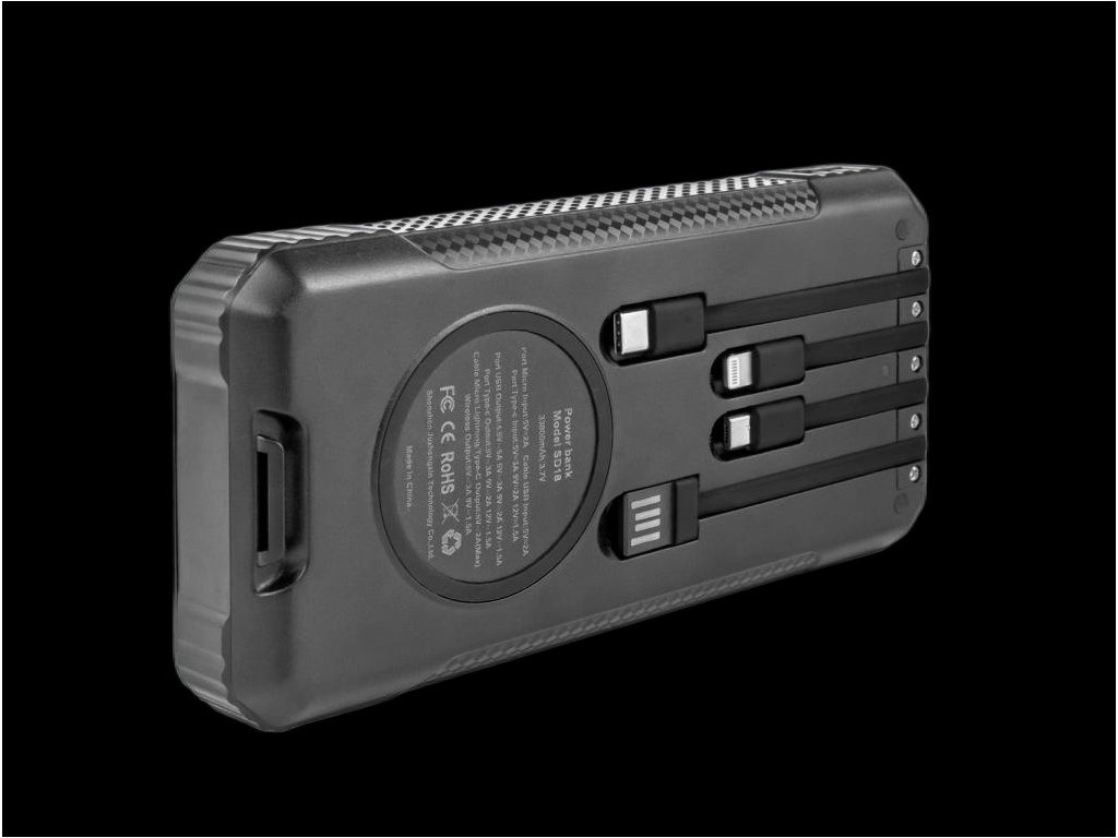 - portem USB (4,5V/5A, 5V/3A, 9V/2A, 12V/1,5A, max 22,5W - vyžaduje 22,5W rychlonabíjecí kabel, který není součástí balení),