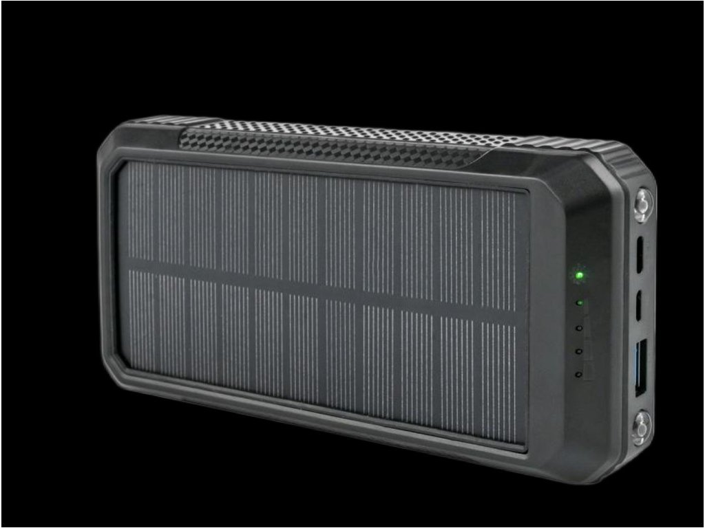 Jedná se o lehkou, přenosnou, multifunkční a vysokokapacitní solární powerbanku, která je kompatibilní s většinou elektronických zařízení (dokáže nabíjet šest zařízení současně). Powerbanka má integrovanou lithium-ion baterie s kapacitou 33 800 mAh. Pomocí Powerbanky lze elektronická zařízení dobíjet i bezdrátově. Powerbanka má integrované čtyři kabely s různými konektory (micro USB, USB Type C, USB a Lightning). V horní části se nacházejí tři porty, a to Type C pro vstup / výstup, micro USB pro vstup a USB pro výstup. Stav nabití Powerbanky je signalizován pomocí čtyř diod, které znázorňují různé stupně jejího nabití. Na powerbance se nachází další dvě signalizační diody, z nichž jedna signalizuje bezdrátové nabíjení, druhá signalizuje dobíjení powerbanky solárním panelem.