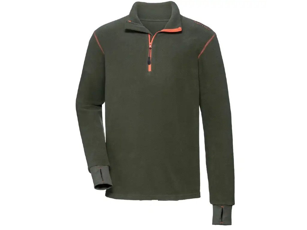 Termo tričko s dlouhým rukávem Heater, vyrobené z odolného, izolačního fleecu o gramáži 180 g/m², je ideální střední vrstvou pro chladné zimní nošení pod zimní bundou. Toto pohodlné fleecové tričko s jemným kartáčovaným povrchem nabízí výjimečné pohodlí. Poloviční zip na límci polokošile umožňuje nastavitelnou ventilaci pro regulaci teploty. Otvory na palce na elastických pletených manžetách jej činí obzvláště praktickým pro vrstvení. Toto tričko s dlouhým rukávem, barevně sladěné s kontrastním prošíváním a viditelnou oranžovou výšivkou loga, doplňuje samostatně dostupné termoprádlo Heater a vytváří tak pohodlnou střední vrstvu, ideální pro vrstvení v mrazivých teplotách nebo jako útulná základní vrstva v teplé lovecké chatě.