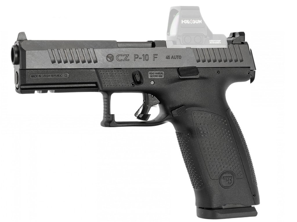 První pistole úspěšné série CZ P-10 v nadčasové ráži 45 Auto, zároveň první Optics Ready "pětačtyřicítka" od Zbrojovky. Velký výkon náboje se u tohoto modelu standardní velikosti snoubí s nadstandardní palebnou kapacitou 13+1 a klíčovými benefity rodiny CZ P-10 v čele s vynikající ergonomií, nízkým odporem spouště, vysokou přesností, vysokou životností, extrémní spolehlivost a skvělou přesností. Tato zbraň má následující bezpečnostní prvky: pojistka spouště, pojistka táhla spouště, blokace úderníku.