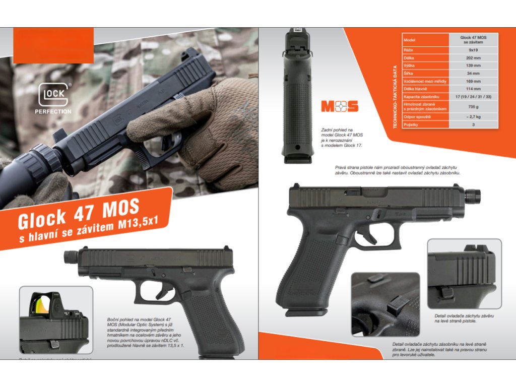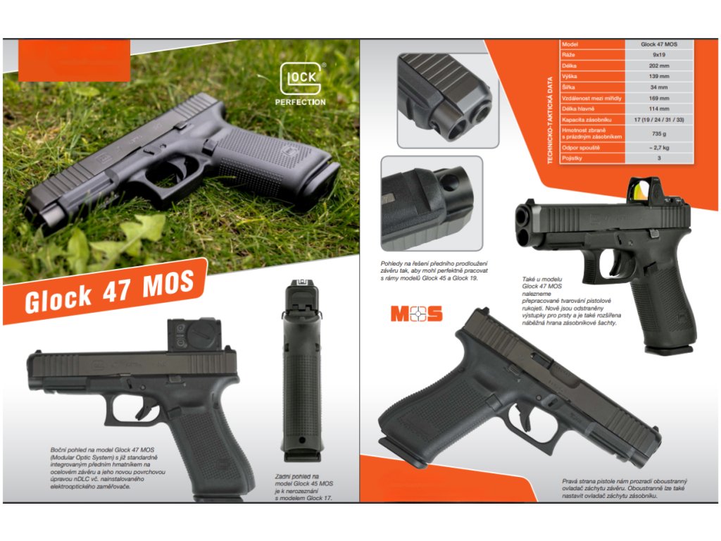 G47 MOS obsahuje veškeré prvky pistolí GLOCK Gen5, nový upravený závěr, přesnou hlaveň Glock Marksman Barrel, vylepšené textury rámu pro jistou manipulaci, modulární systém výměnných hřbetů rámu pro individuální nastavení, vypouštěč zásobníku volitelně vlevo-vpravo, oboustranný záchyt závěru, upravenou spoušť s hladším chodem. Novou povrchovou úpravu závěru a hlavně nDLC.