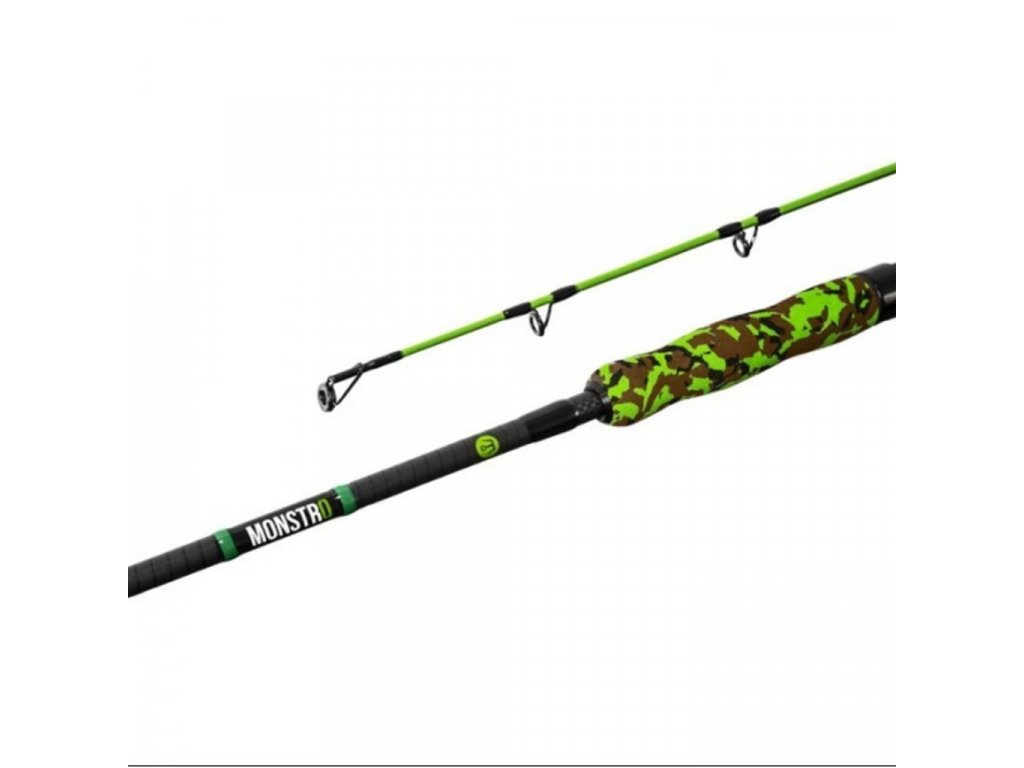 MONSTRO vás na první pohled zaujme novým, propracovaným a agresivnějším designem. Prut si prošel přepracováním a vyztužením blanku. Gramáž poskočila na úctyhodných 250g a díky technickým řešením přináší rovnoměrné rozdělení síly při zdolávání, bez zbytečných spojů. Primárně je určen pro extrémní lov zejména z člunu nejen na řekách nebo jezerech, ale dokonce zvládá i lov z člunu na moři. Rukojeť má nový ergonomický design, který oceníte v extrémních situacích a její koncovka je vhodná pro použití se zdolávací pásem. Zdoláte s ním i ty největší ryby z hlubin. Obrovské sumce či velké mořské ryby. To jsou cíle tohoto krátkého, avšak extrémně silného prutu. Už při navrhování jsme dbali na výjimečně silný blank, který zkrotí i ty největší krále vod. Sedlo navijáku je navíc pojištěno ještě maticí, což zaručuje, že ani v těch nejkrizovějších momentech Monstro nepoleví. Dělení prutu je asymetrické - blank (150cm), včetně všech oček se vkládá do rukojeti (70cm), protože pouze tak je možné garantovat opravdovou sílu neoslabenou klasickou spojkou. Už při navrhování jsme dbali na výjimečně silný blank se zpevňujícím karbonovým opletem PowerWrap, který je velmi pevný a výborně pracuje při nahazování či zdolávání. Očka prutu jsou zesílena a vyvázána s vysokým důrazem na celkovou odolnost a vysoké namáhání.