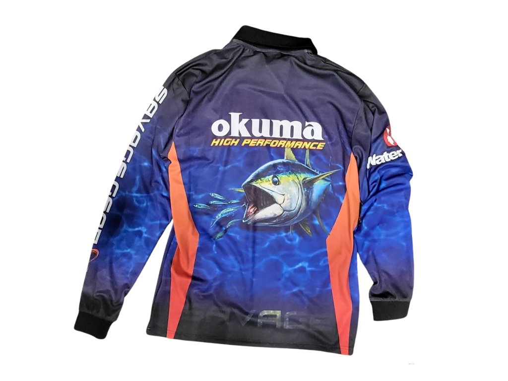 Ciťte se a chytejte ryby jako profík v tomto skvěle vypadajícím závodním dresu v barvě mořské vody s dekorací ryby a s logem.