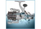 Precizní mosazné strojově obráběné převody a velice pevné a lehké grafitové vůči korozi odolné tělo navijáku