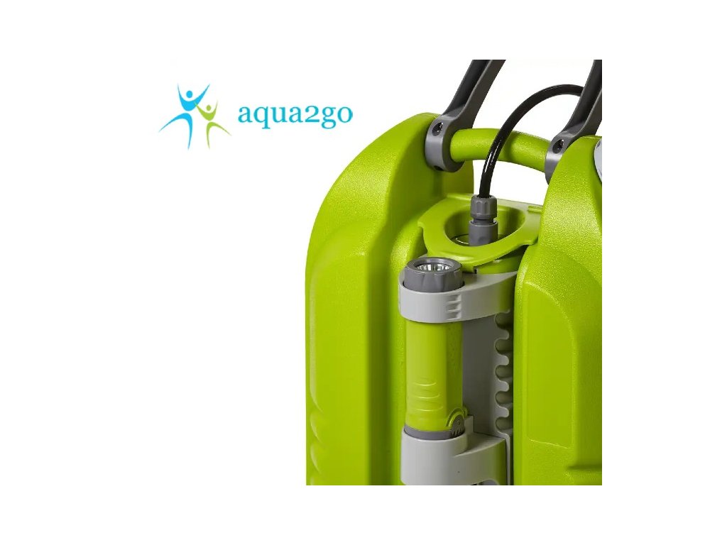 Vysokotlaký čistič Aqua2go PRO s integrovanou baterií (2200 mAH, lze nabíjet přes připojení 220 V, doba nabíjení 2 hodiny) je ideální pro různé rekreační oblasti: ať už kempování, jízda na horském kole, jezdecké sporty nebo vodní sporty - účinně čistí.
