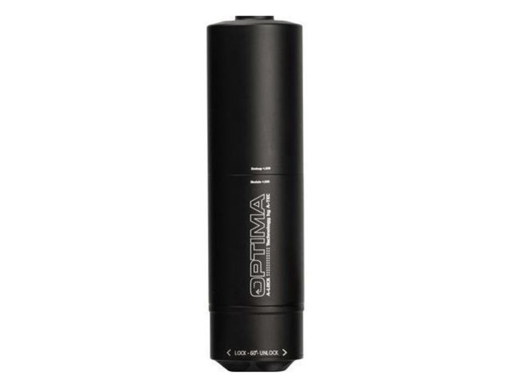 A-TEC Optima - kompletní popis technická data, seznam ráží a systémů upnutí v katalogu A-TEC v Českém jazyce ke stažení na našich stránkách. Modely Optima 60 a 45 jsou určeny pro lovecké a sportovní opakovací, samonabíjecí zbraně, bez předních mířidel. Tlumič jde o 8cm zpět přes hlaveň a přidává tak pouze 15cm k celkové délce zbraně. Přední modul tlumiče je výměnný a lze tak mít jeden tlumič s výměnou sadou modulů pro různé ráže. Model Optima Front je určen pro zbraně s předními mířidly a celou svojí délkou jde dopředu před ústí, opět lze měnit přední modul za modul pro jiné ráže Model Optima Flow je určen speciálně pro samonabíjecí lovecké a sportovní zbraně. Technologie A-FLOW snižuje tlak a tok plynů zpět směrem k výchozímu okénku zbraně. Nejde zpět přes hlaveň a lze měnit přední modul
