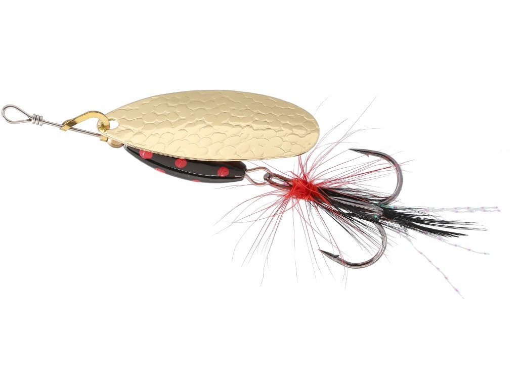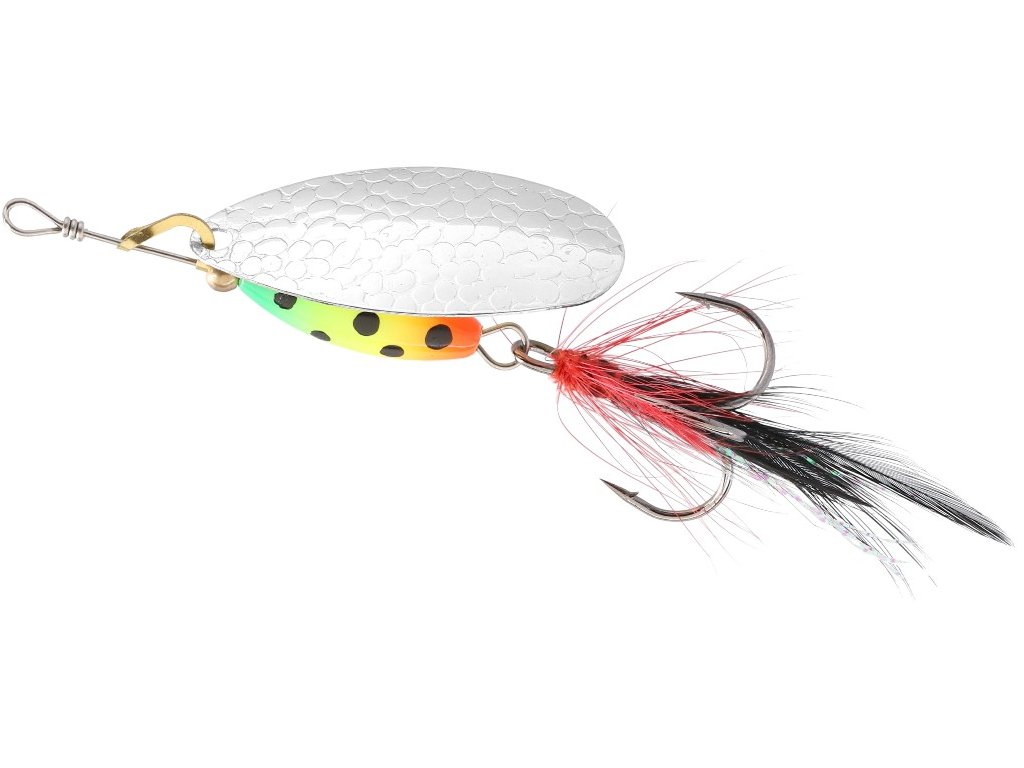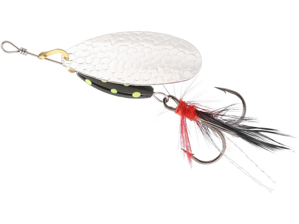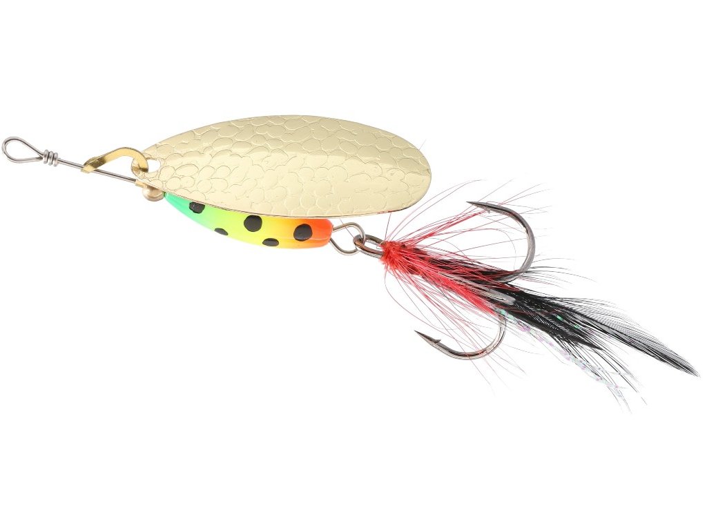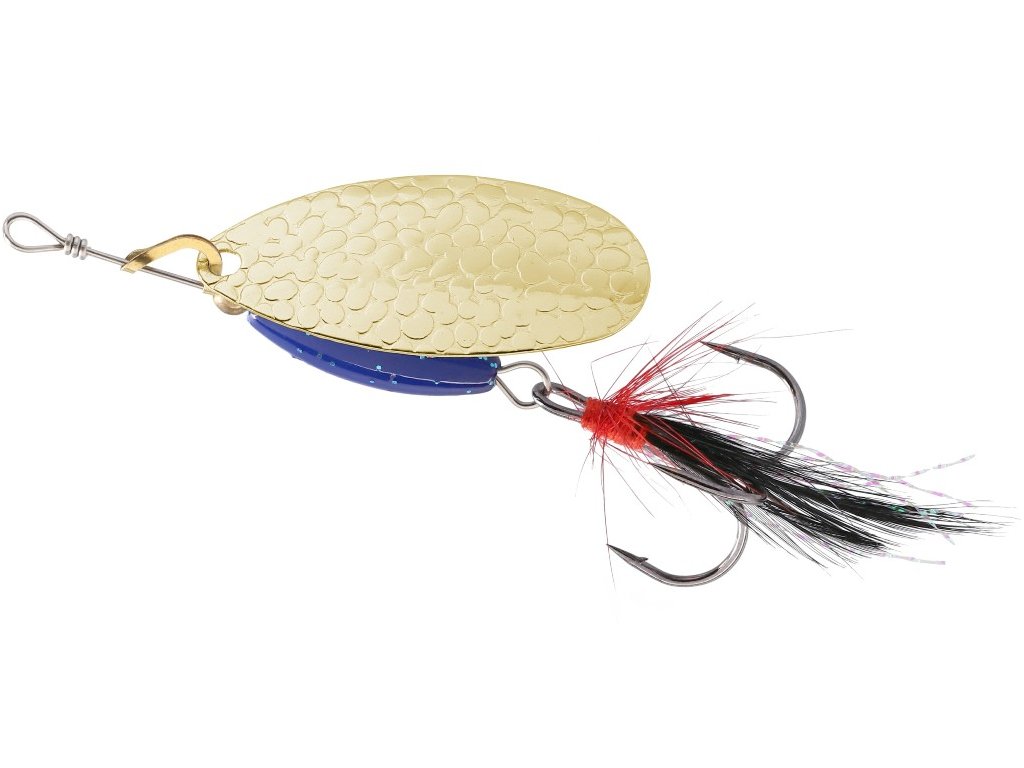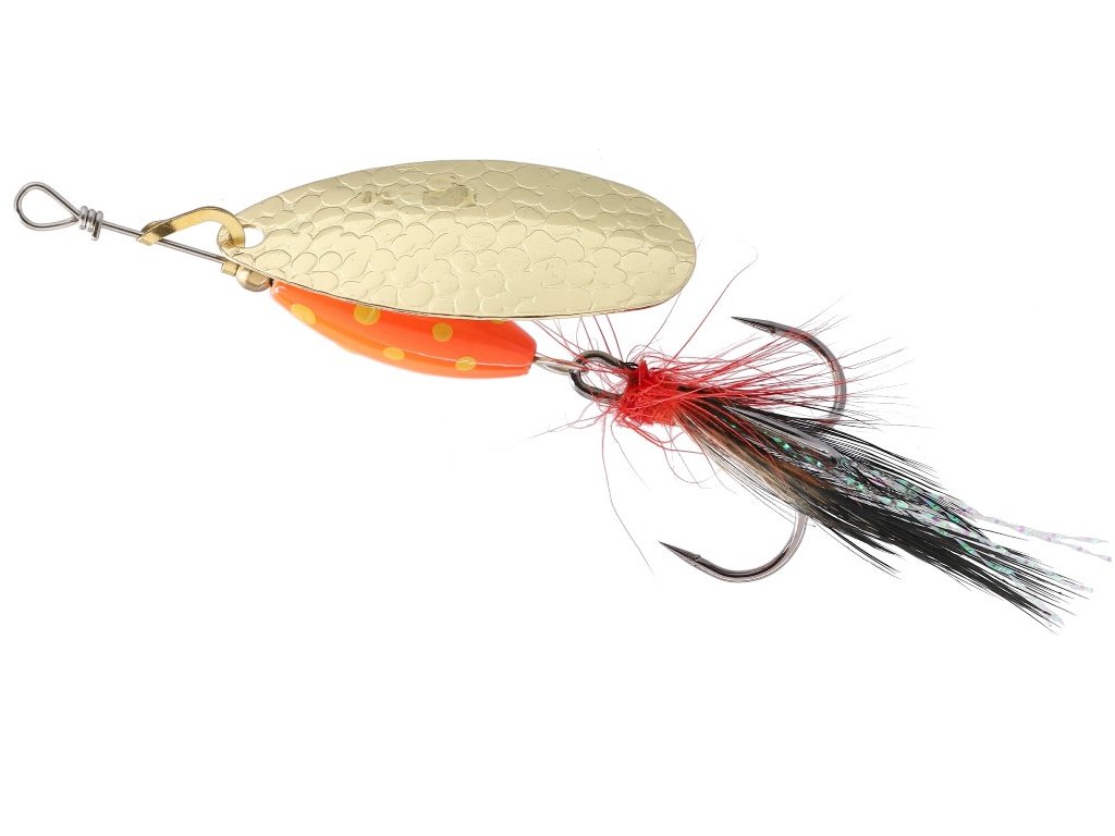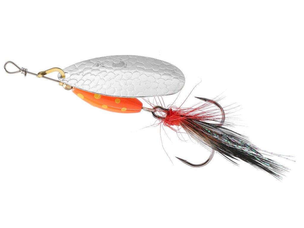 Rotační třpytka se širokým křidélkem a s těžkým, barveným tělem, které umožňuje prolovovat i ty nejméně přístupné místa a tůně v korytě řeky. Střapce zvyšují atraktivitu a četnost záběrů