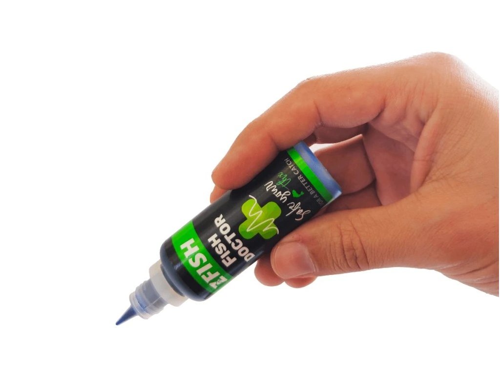 Antibakteriální přípravek na ošetření ryb. Pomůcka pro každého sportovního rybáře. Dává vašemu úlovku okamžitý start k zotavení. Jednorázové ošetření ihned po vyjmutí háčku zabrání růstu druhotné infekce. Urychluje přirozené hojivé procesy. Aktivní antibakteriální prostředky pomáhají hojit všechna otevřená zranění, v tlamě. Každé balení obsahuje dost roztoku pro ošetření více než 300 ryb.